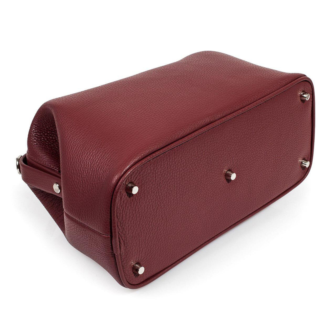 Marsala genuine leather handbag from ukrainian designer Katerina Fox. This model is designed for women who appreciate the sleek design combined with functionality and comfort. High-quality and reliable hardware ensure long service bags. The internal space of a bag is equipped with one spacious compartment and two patch-pockets and one zipper pocket. The bag is closed with a clasp. The bottom of the bag is protected with metal legs. There is a long handle that allows you to wear the bag on the shoulder. The kit also includes a storage bag.