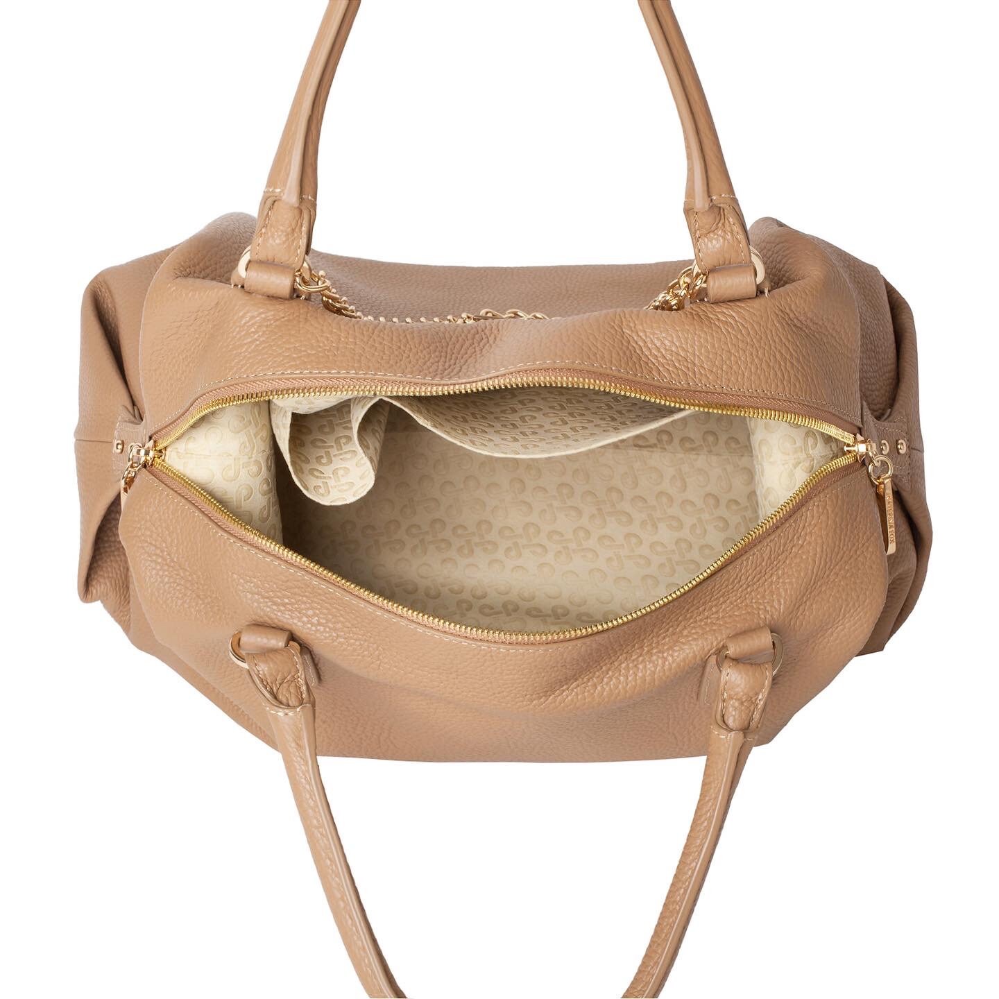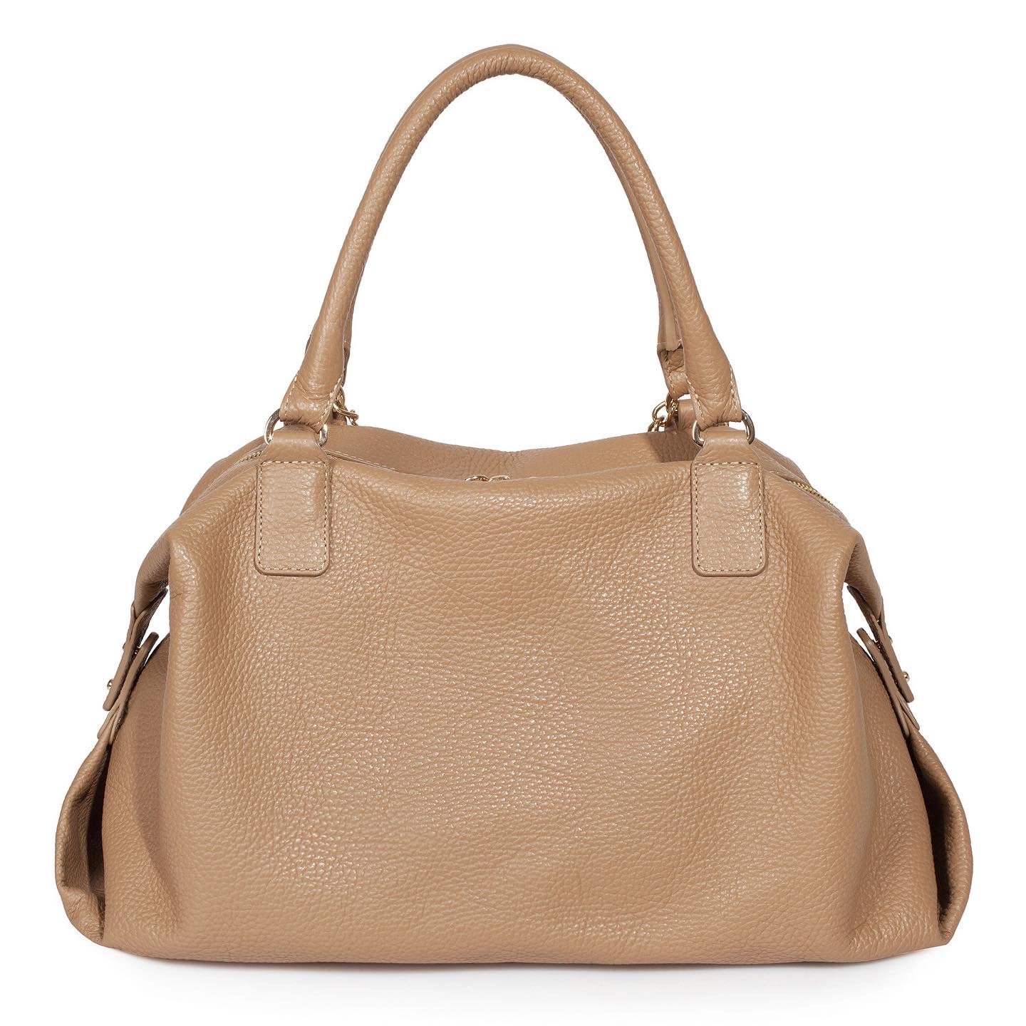 Dark beige genuine leather woman handbag from ukrainian designer Katerina Fox. Leather bag soft original shape will fit any style. Double chain, of course, adorns this model and highlights of many of these. All hardware what we use is good quality, reliable and durable. Inside is one large compartment and one small pocket with zipper for small items, closes with a zipper. Inside the bag one large compartment, two pouch pockets and one zip pocket, bag closes with a zipper. Convenient short handle. This bag is an indispensable accessory in your wardrobe!